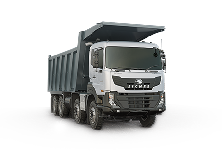 The Eicher 8035XM stands out as a heavy-duty mining tipper, engineered for demanding haulage tasks and recognized for its robust performance and reliability in construction and mining applications.