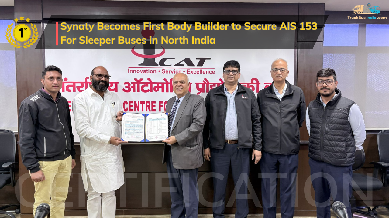Synaty Automotive Pvt. Ltd. has emerged as the first bus body builder in North India to secure AIS 153 certification for sleeper buses from the International Centre for Automotive Technology. The achievement places the company among a select group of manufacturers nationwide that have complied with the now mandatory safety standard.