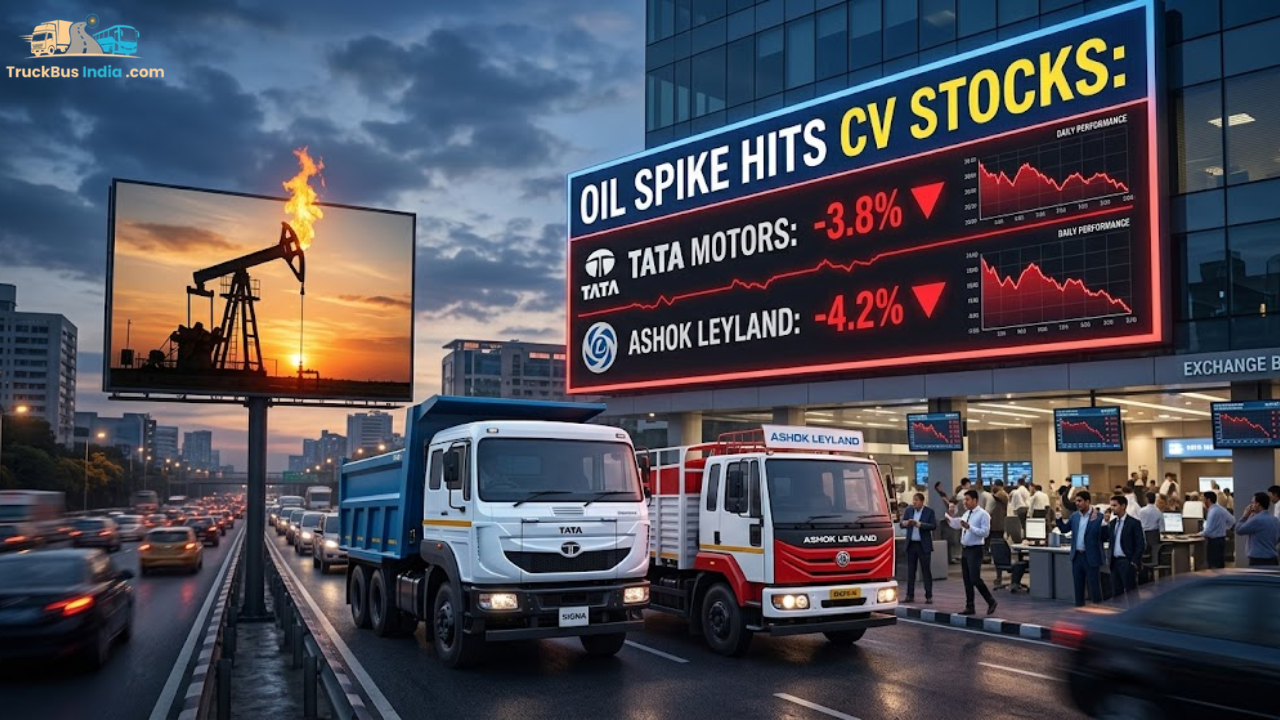 Oil Spike Hits CV Stocks: Tata & Ashok Leyland Shares Drop