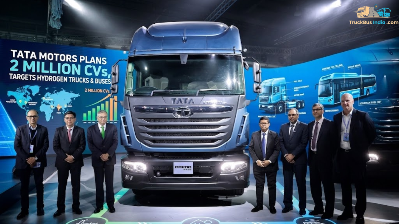 Tata Motors has announced an ambitious five-year expansion plan for its commercial vehicle business, targeting production of two million units. The strategy strengthens its push toward hydrogen-powered mobility, electric vehicles, and multi-energy platforms, with a strong focus on the Lucknow manufacturing facility.