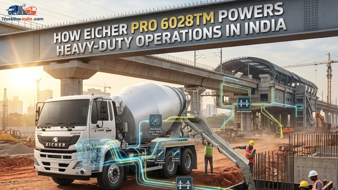The Eicher Pro 6028TM has emerged as a strong contender in this segment. Built as a transit mixer, this truck combines performance, durability, and driver comfort, making it suitable for demanding job sites. With a 28,000 kg GVW and high payload capacity, it is widely preferred by contractors and fleet operators across the country.