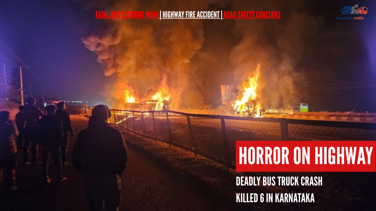 Deadly Highway Crash in Karnataka: 6 Killed as Bus Catches Fire After Truck Collision