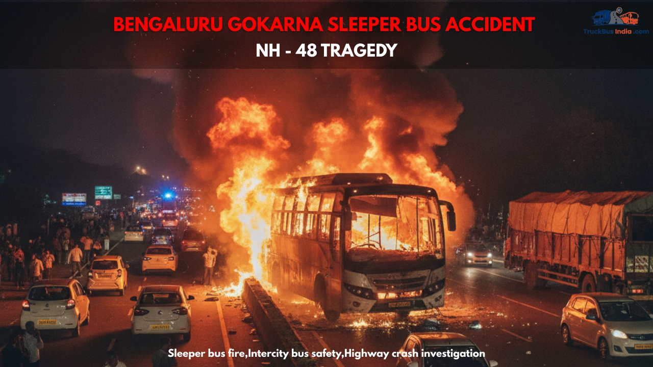 NH 48 Tragedy: Five Killed as Bengaluru–Gokarna Sleeper Bus Catches Fire After Truck Crash